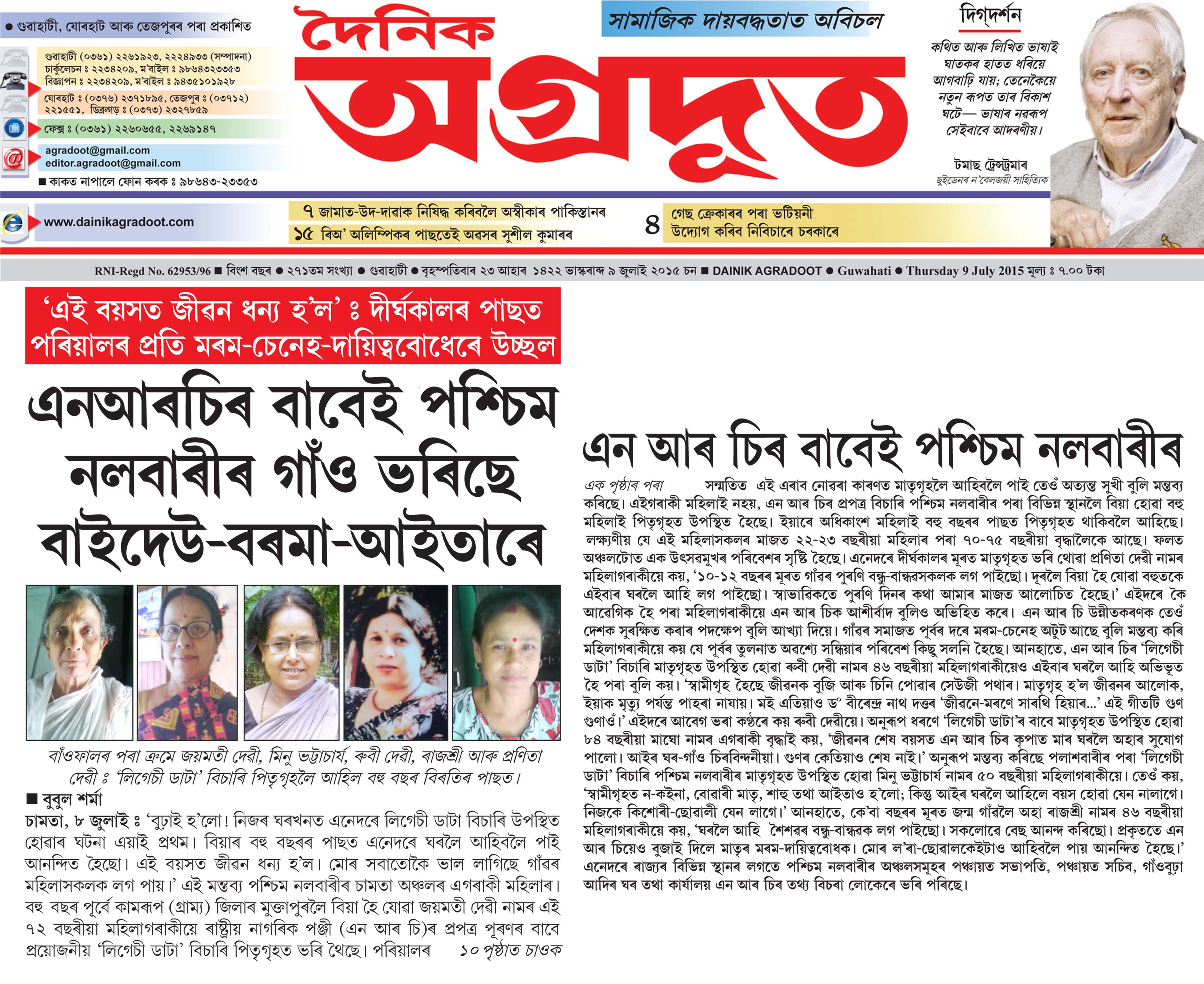 Dainik Agradoot - Dated 09/07/15