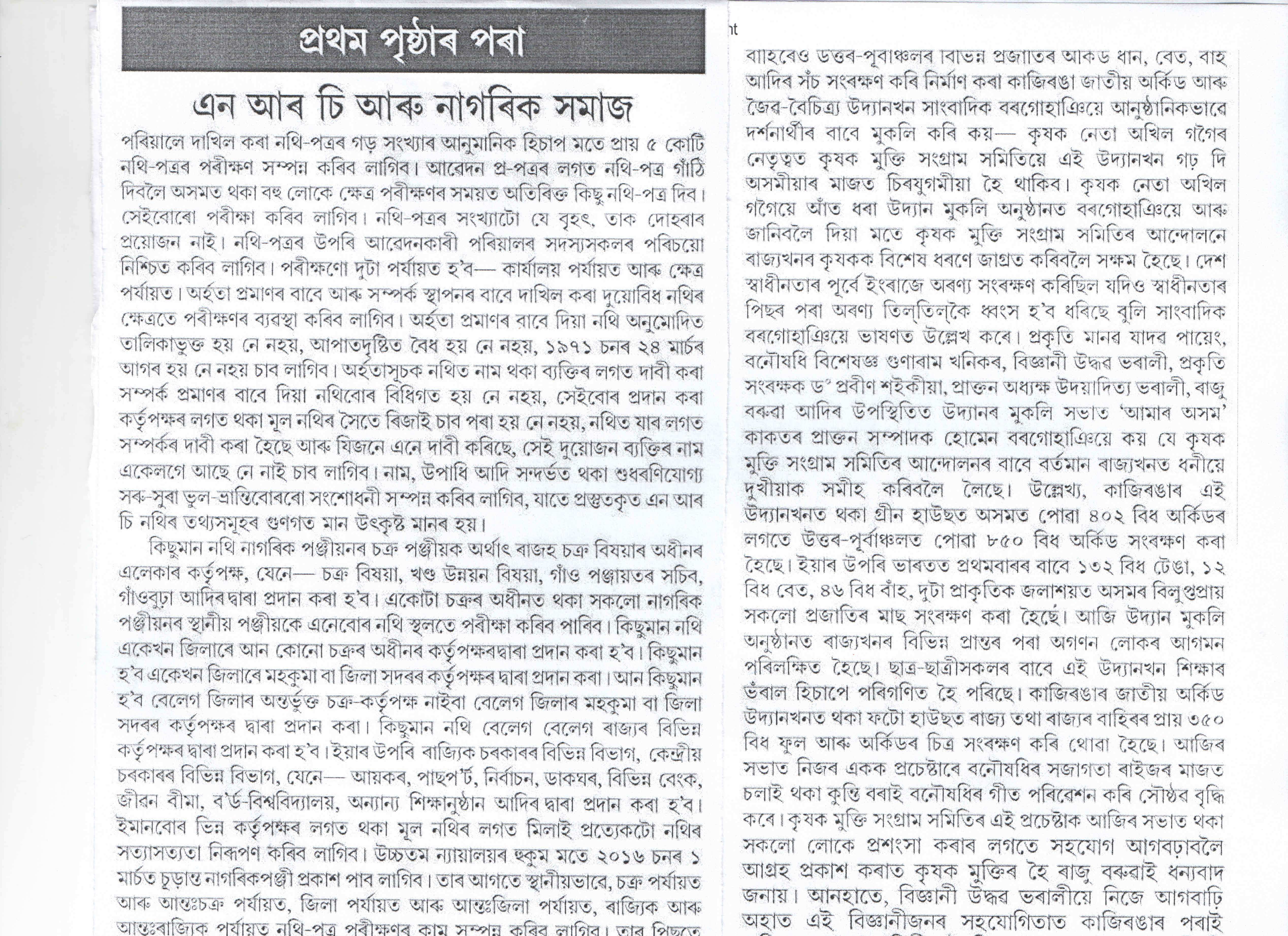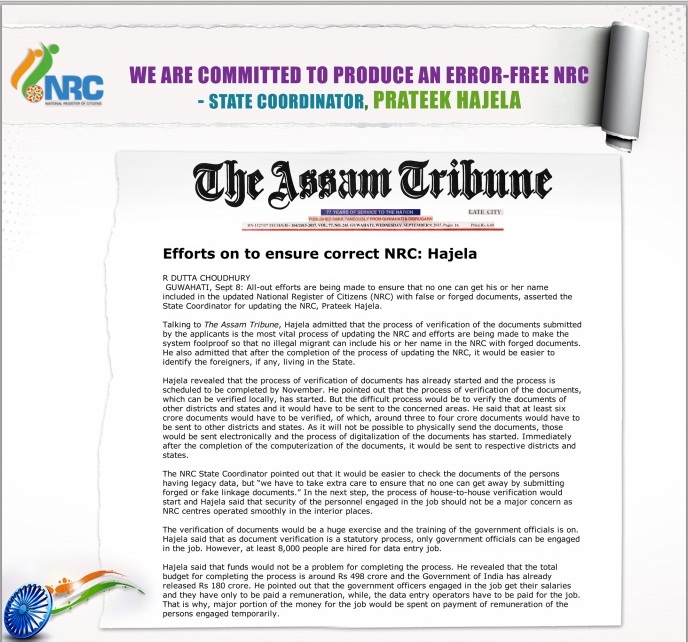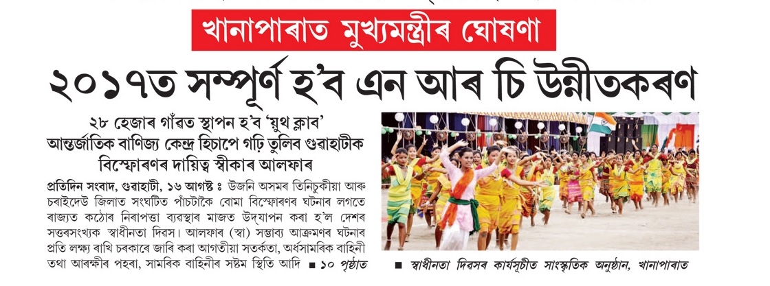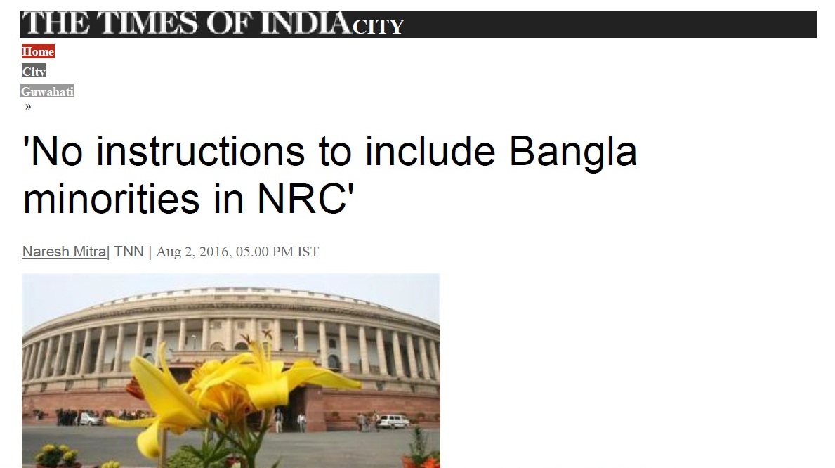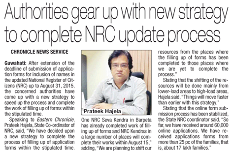 Announcement at Khanapara by Assam CM: NRC updation to be completed by 2017.
